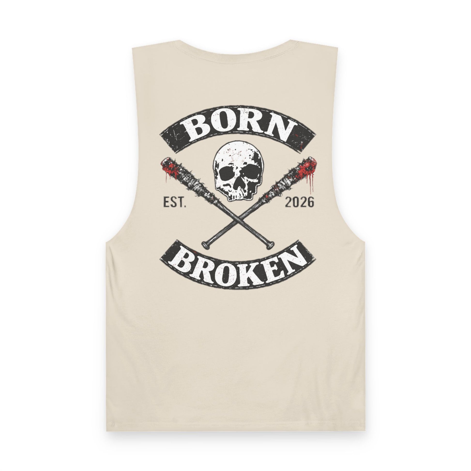 Born Broken Skull Tank Top — Edgy Skull & Crossed Bats Graphic Muscle Tank