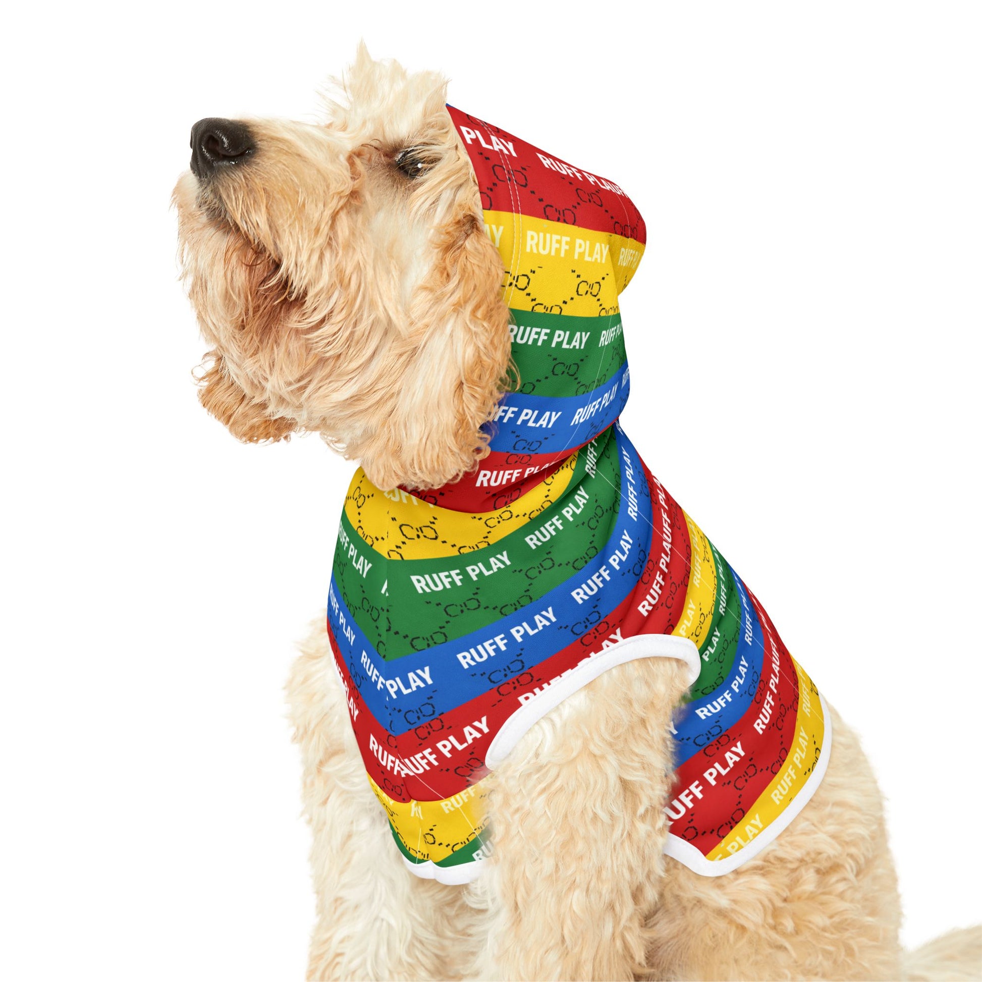 Ruff Play Rainbow Pet Hoodie – Striped Hooded Dog Sweatshirt