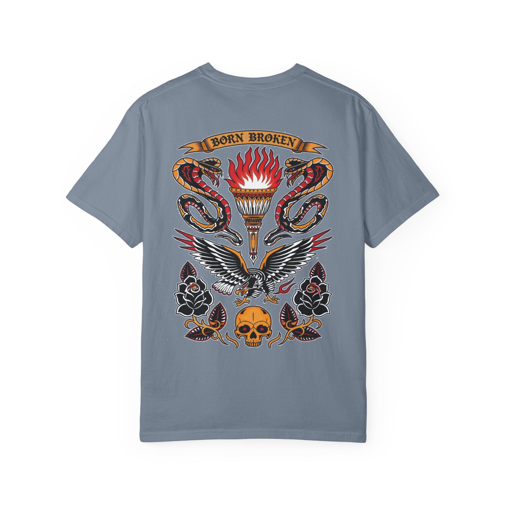 T-shirt — Born Broken Eagle & Torch Vintage Tattoo Design